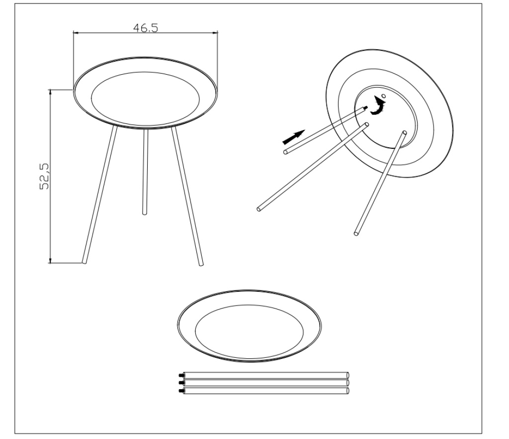 • Boyutlar: 41.5 cm yükseklik ve 46.5 cm çap, küçük alanlar için uygundur.